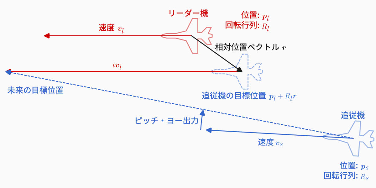 - $\mathbb{v}_l$: リーダー機の速度 (リーダー機ローカル)